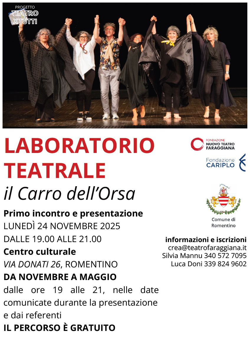 "Nuovo Teatro Faraggiana" con il patrocinio di "Fondazione Cariplo" e "Comune di Romentino" organizza il laboratorio Teatrale "Il Carro Dell'Orsa"