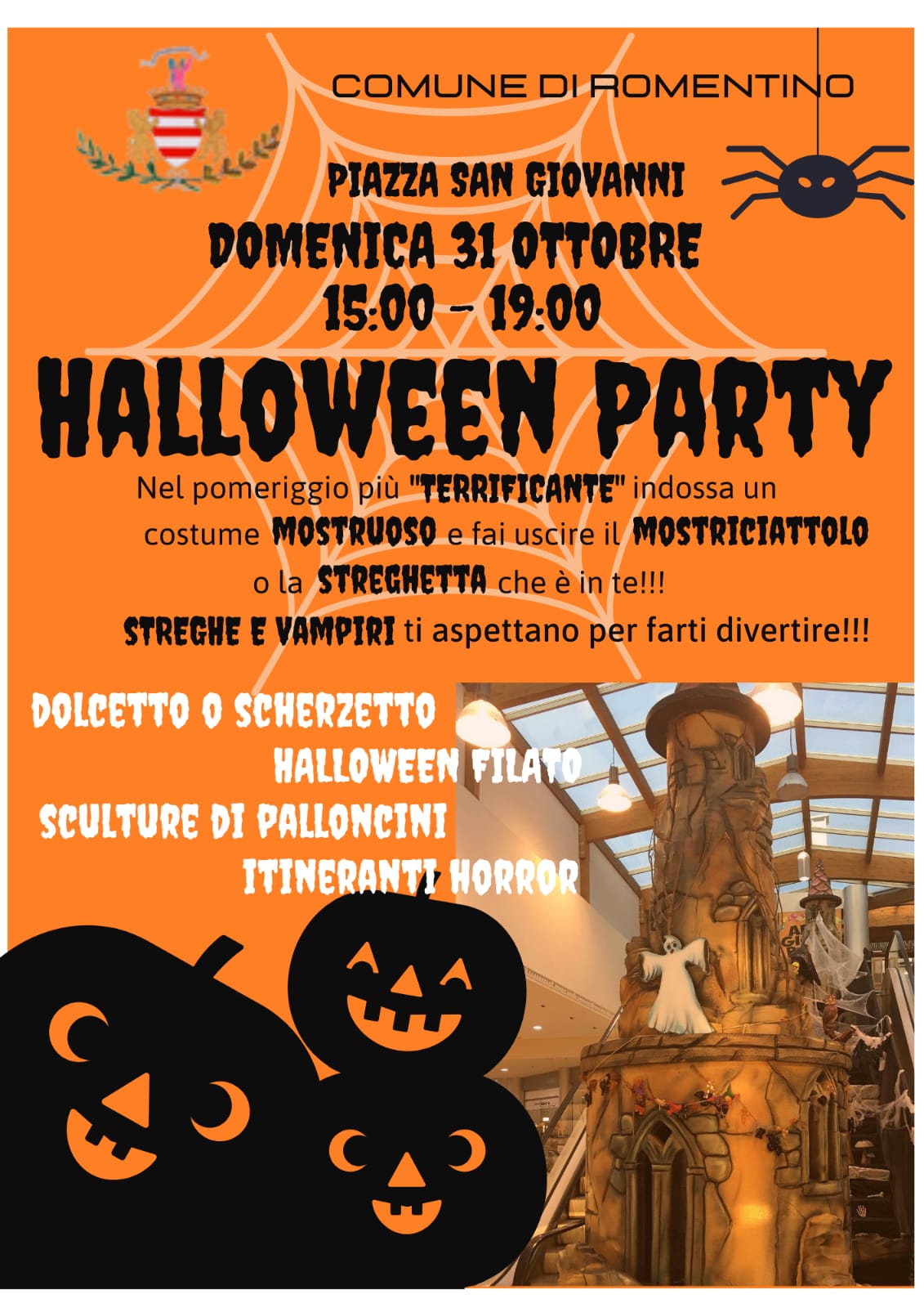 Causa maltempo la Festa di Halloween è spostata a Sabato 06 Novembre dalle ore 15:00 alle ore 19:00 in Piazza San Giovanni (in caso di maltempo Sabato ci si trasferirà al Centro Culturale "Arch. Pio Occhetta").
