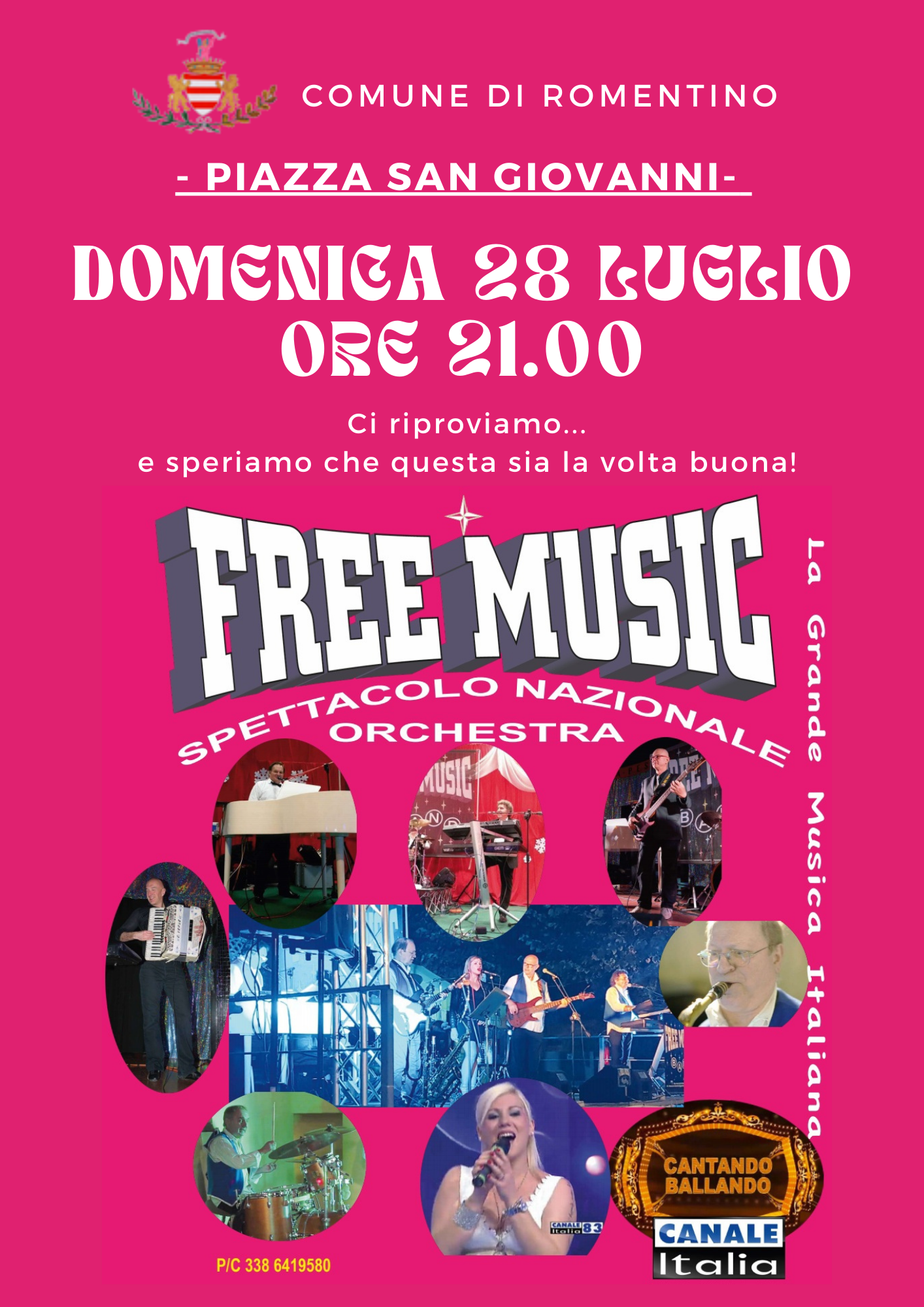 Domenica 28 luglio, ore 21.00, l'orchestra si esibisce in piazza san Giovanni!! La grande musica italiana suona a Romentino!!. in allegato il manifesto dell'evento.