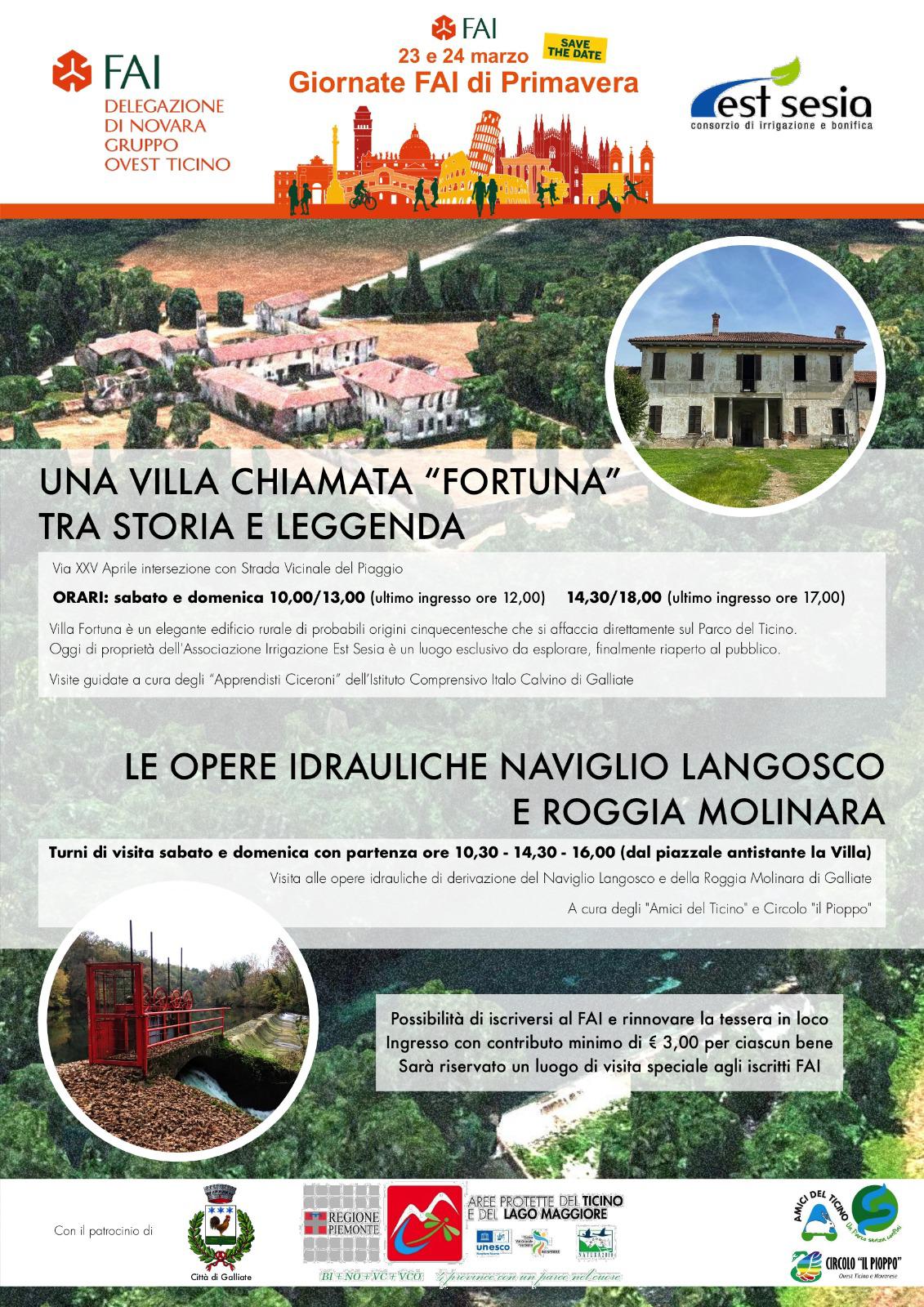 Giornate Fai primavera Galliate: Santuario Varallino, una villa chiamata "Fortuna", e le opere idrauliche naviglio Langosco e roggia Molinara.
