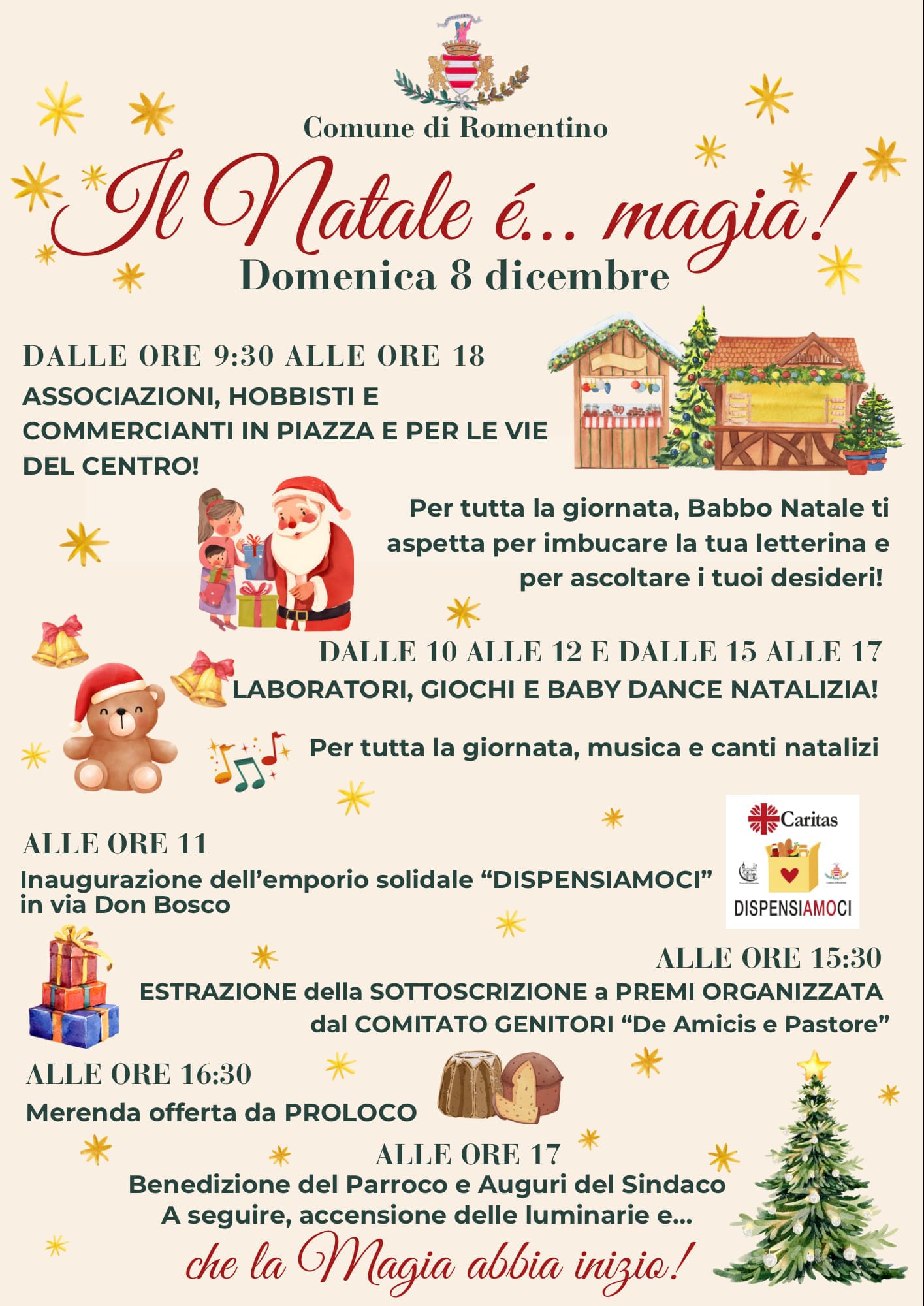 Domenica 08 dicembre, per le vie del centro, si terrà l'evento "Il Natale è magia". Mercatini di natale, musica, giochi e intrattenimento per bambini, estrazione lotteria, merenda per tutti, accensione delle luci e tanto altro....