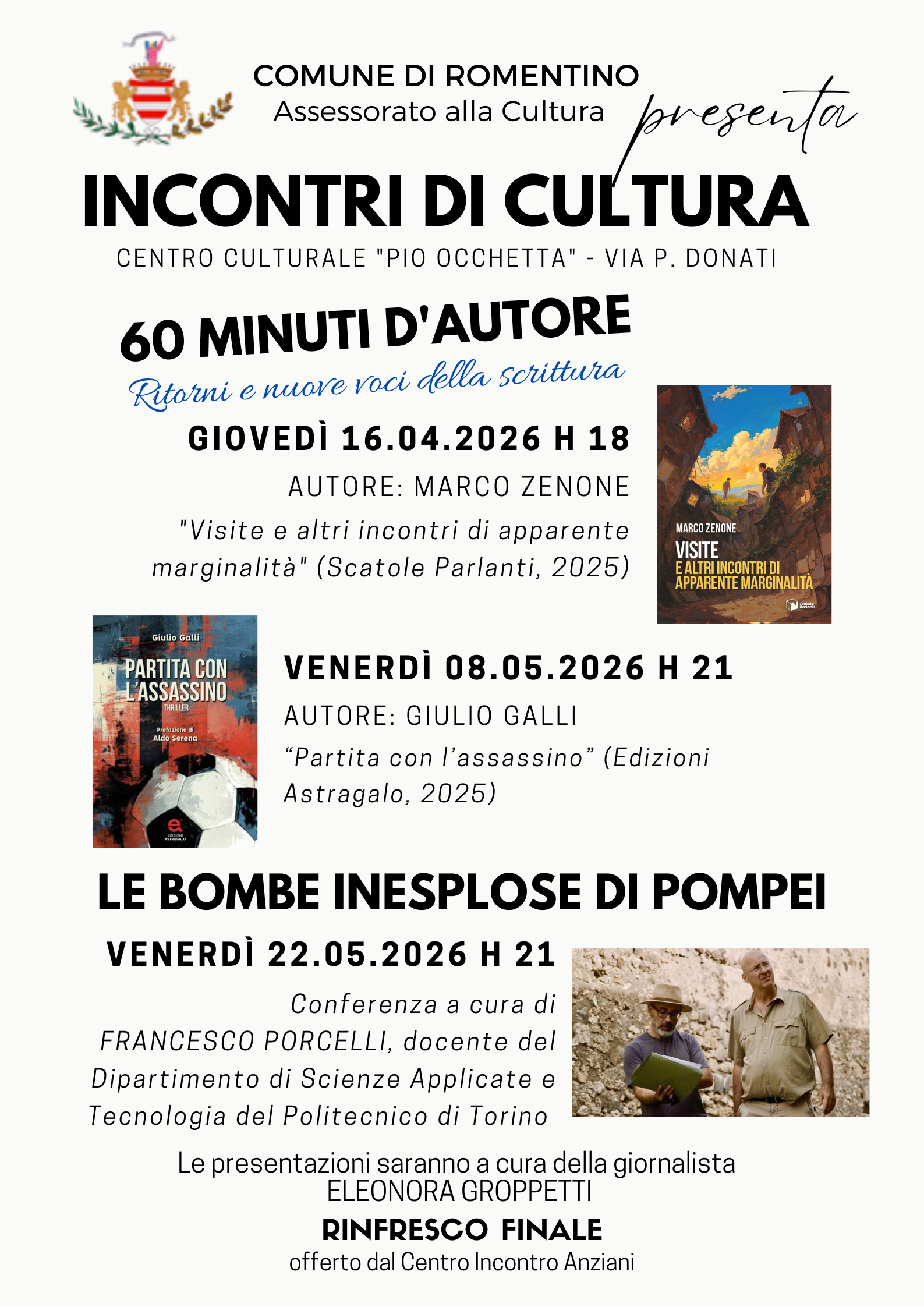 Le presentazioni saranno a cura della giornalista ELEONORA GROPPETTI
