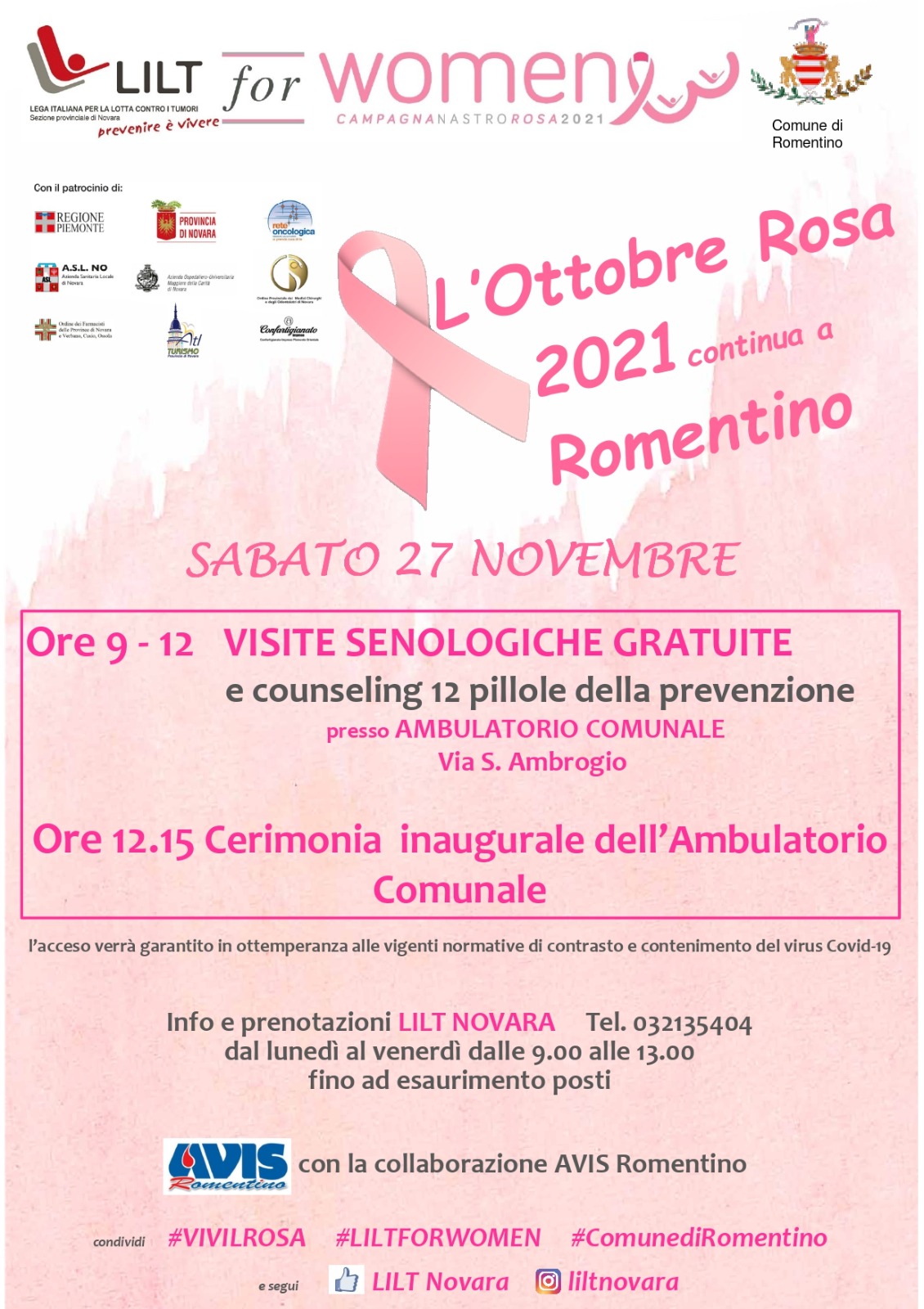 Info e prenotazioni Lilt Novara, allo 0321.35404, dal lunedì al venerdì dalle ore 09:00 alle ore 13:00 fino ad esaurimento posti.