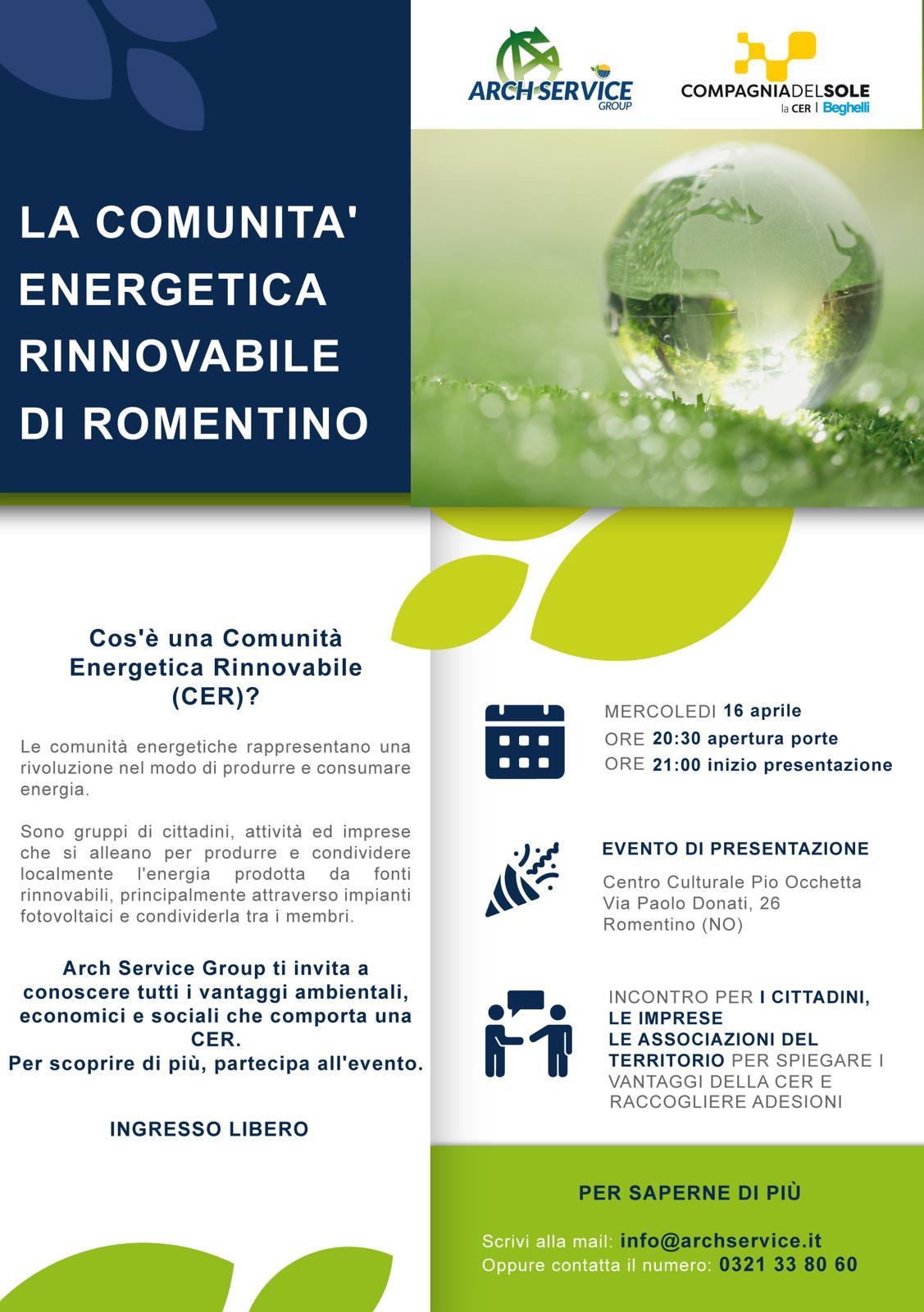 Arch service group, in collaborazione con il comune di Romentino ti invita a conoscere tutti i vantaggi ambientali, economici e sociali che comporta una CER.