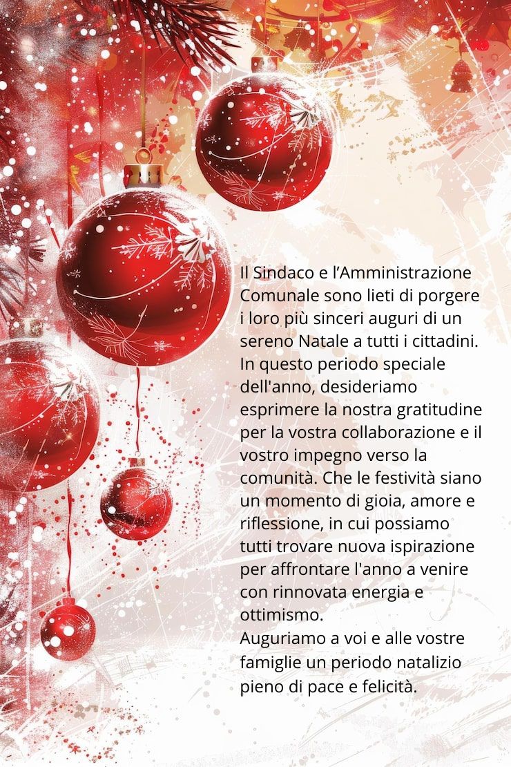 Il Sindaco e l'Amministrazione Comunale sono lieti di porgere i loro più sinceri auguri di un sereno Natale a tutti i cittadini.