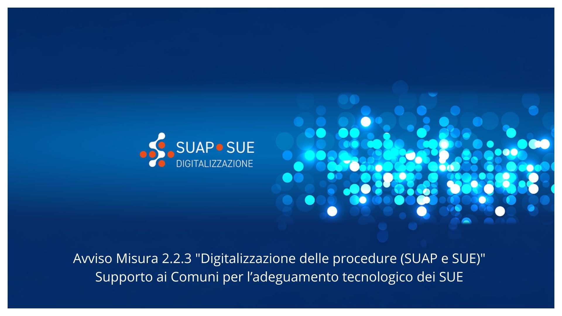 Avviso Misura 2.2.3 "Digitalizzazione delle procedure (SUAP e SUE)" Comuni - Supporto ai Comuni per l’adeguamento tecnologico dei SUE