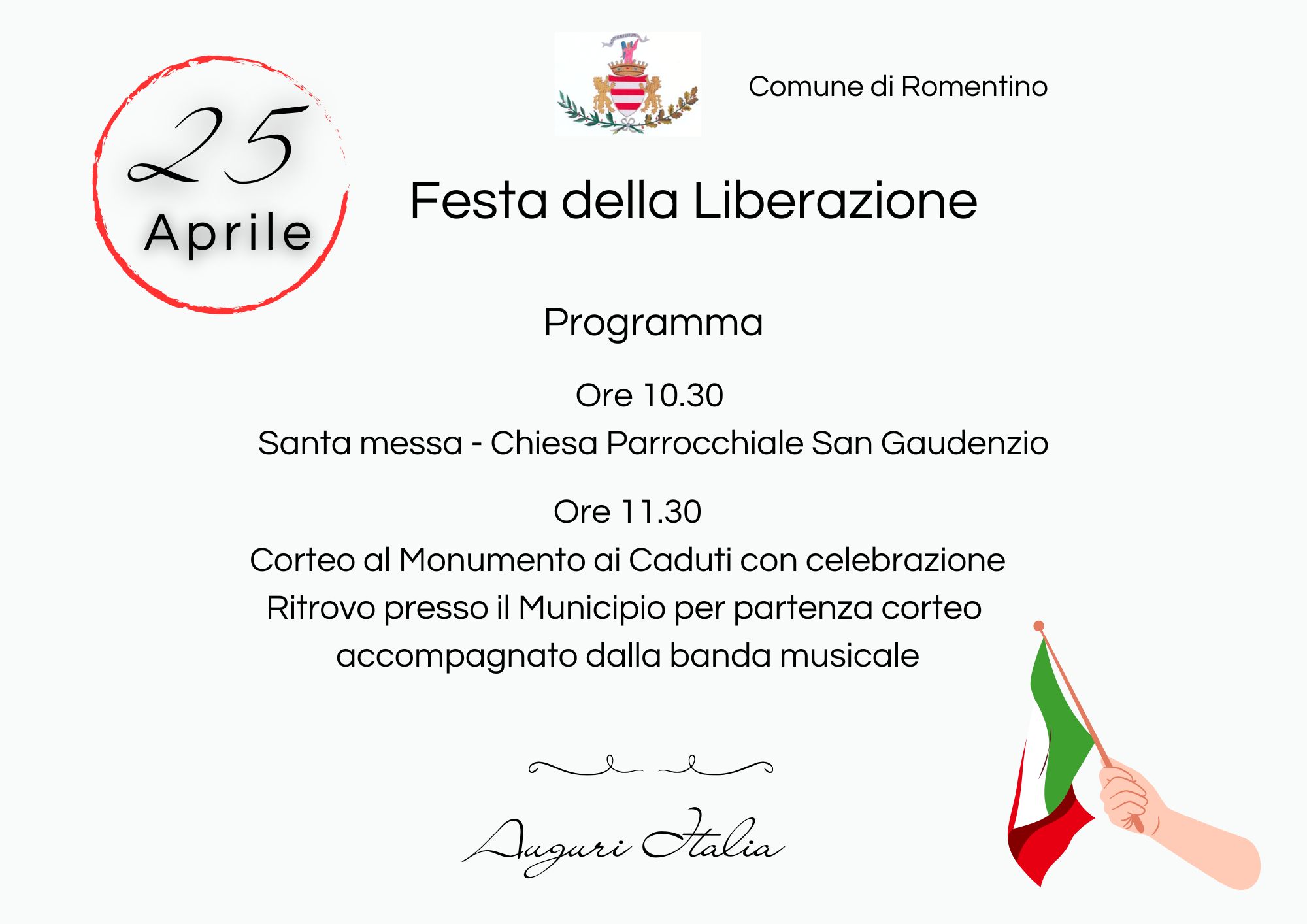 Sabato 25 Aprile 2026 si celebrerà la Festa della Liberazione. Il programma sarà il seguente:
