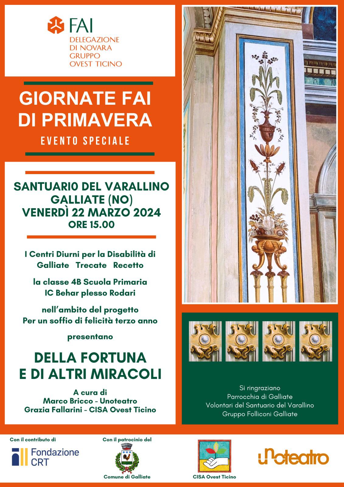 Giornate Fai primavera Galliate: Santuario Varallino, una villa chiamata "Fortuna", e le opere idrauliche naviglio Langosco e roggia Molinara.